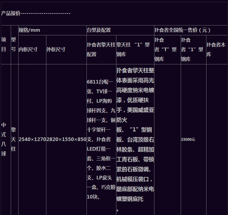 扑食者擎天柱台球桌成功研发于2016年,外形独特美观,球桌腿部粗壮大气。并于2016年其外观通过中国国家专利局认证批准并下发其外观专利证书。